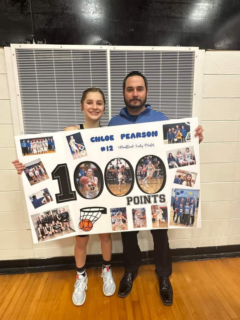 Junior Chloe Pearson hit 1,000 career points in an awesome game against Halfway on January 31st, 2023. Chloe is Wheatland Lady Mules’ point guard. She has been playing basketball since she was 4, and she loves the competitiveness and family building with the team. When she hit the thousand points, she felt relieved and accomplished. Everyone is very proud of your accomplishment.