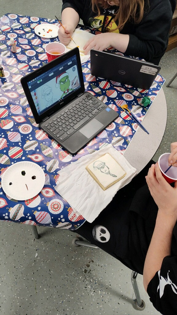 1st grade is making frogs out of air dry clay, 2nd grade is making birds out of clay, 3rd and 4th graders made what they wanted out of clay, 5th graders made paintings out of bubble’s and food coloring and Middle School is using oil pastels on cardboard to make a landscape scene. Whether it’s exploring various techniques or experimenting with different mediums, each project offers a chance to learn, grow, and push boundaries.